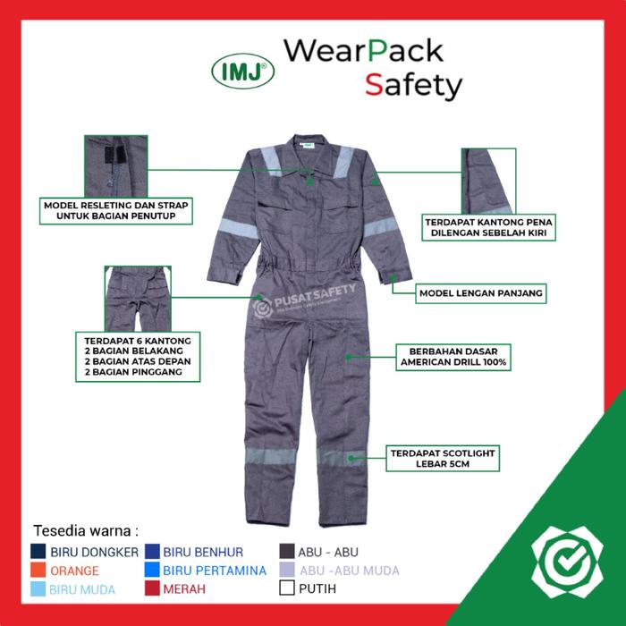 Tingkatkan standar keselamatan dan kenyamanan tim Anda dengan Wearpack Coverall Safety dari IMJ. Dirancang khusus untuk lingkungan kerja proyek yang menuntut, pakaian ini menggabungkan daya tahan tinggi dengan fitur keselamatan canggih. Bahan American Drill High Premium menjamin sirkulasi udara optimal sehingga tetap adem dan nyaman sepanjang hari, bahkan di bawah terik matahari. Materialnya kuat, tidak mudah robek, dan warna tidak mudah luntur meski sering dicuci.