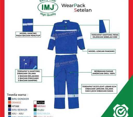 Tingkatkan keselamatan dan kenyamanan kerja dengan Wearpack Setelan Safety dari IMJ. Dirancang khusus untuk pekerja proyek, setelan ini terdiri dari baju dan celana yang terbuat dari bahan American Drill 100% berkualitas tinggi. Bahan ini memiliki ketebalan sedang sehingga tidak mudah robek dan tetap nyaman digunakan dalam cuaca panas karena memiliki kemampuan menyerap keringat dengan baik. Tekstur bahan yang unggul menjamin setelan tidak mudah menyusut setelah pencucian. Fitur keselamatan utama adalah adanya pita Scotlight yang memantulkan cahaya, meningkatkan visibilitas dan keamanan pengguna di lingkungan gelap atau minim cahaya.