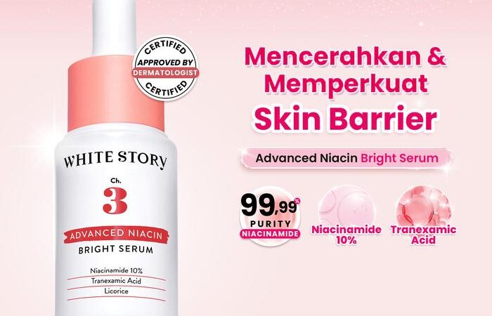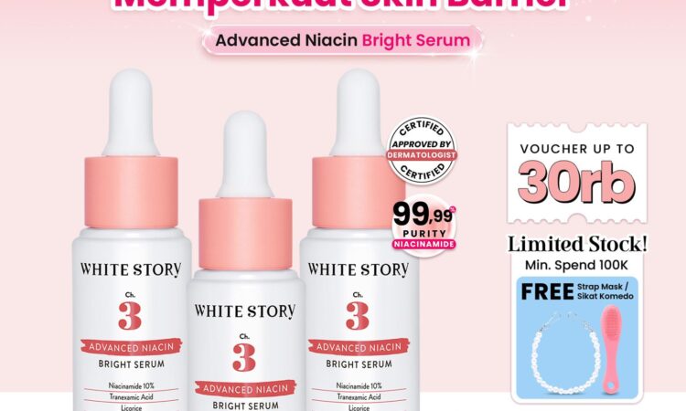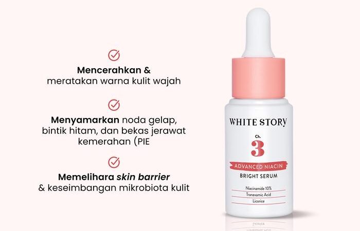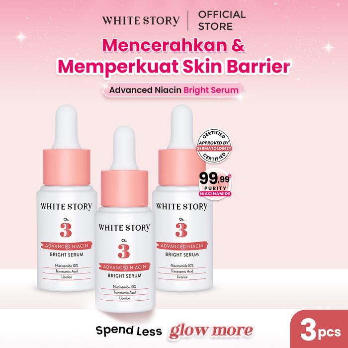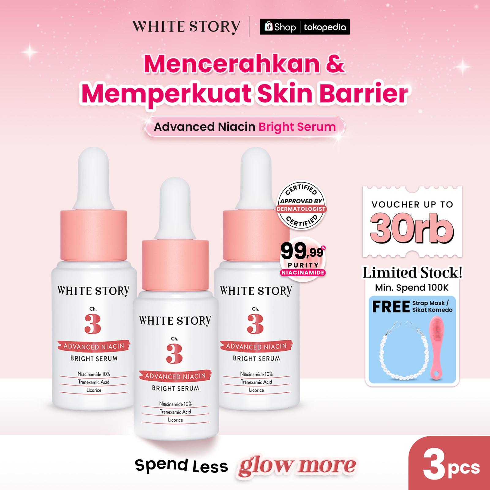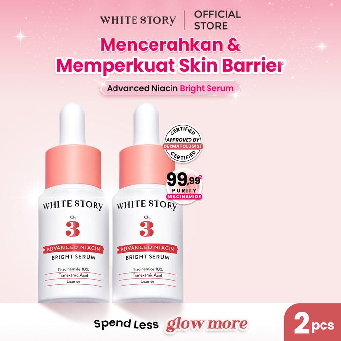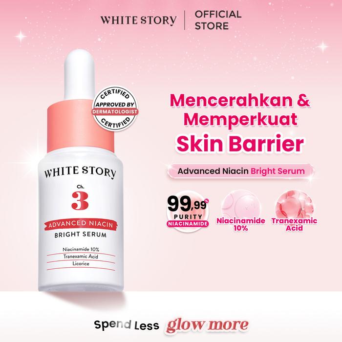 Wujudkan kulit cerah berkilau dan bebas noda hanya dalam satu langkah! White Story Advanced Niacin Bright Serum diformulasikan dengan kombinasi bahan aktif terbaik untuk target hasil yang lebih cepat dan optimal.