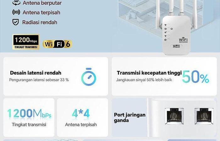 Tingkatkan jangkauan dan kualitas sinyal WiFi di setiap sudut rumah atau kantor Anda dengan WiFi Repeater 300Mbps. Perangkat ini dirancang untuk menghilangkan zona mati (dead zone) dan memberikan koneksi yang stabil serta cepat untuk semua aktivitas online Anda.