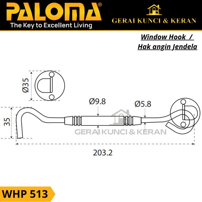 Window Hook Paloma WHP 513 Steel 502-8″ | Hak Angin Penahan Jendela Premium