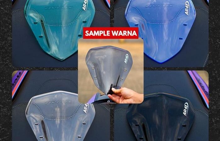 - Akrilik: Bahan plastik transparan yang kuat, tahan UV, dan ringan, sering digunakan untuk windshield motor.