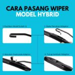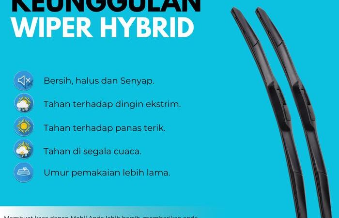 - Wiper Hybrid: Wiper yang menggabungkan kerangka logam tahan karat dengan material karet lembut, dirancang untuk memberikan tekanan merata pada kaca dan mengurangi getaran serta suara.