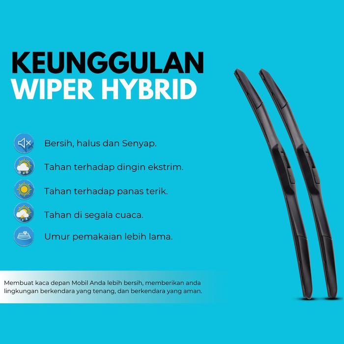 - Wiper Hybrid: Wiper yang menggabungkan kerangka logam tahan karat dengan material karet lembut, dirancang untuk memberikan tekanan merata pada kaca dan mengurangi getaran serta suara.
