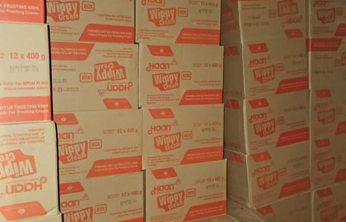 Wujudkan kreasi hidangan penutup yang sempurna dengan Wippy Cream Haan. Produk inovatif ini adalah whipping cream berkualitas tinggi dalam bentuk bubuk yang sangat praktis dan ekonomis. Keunggulan utama produk ini adalah daya simpannya yang jauh lebih lama dibandingkan whipped cream cair, sehingga Anda tidak perlu khawatir produk cepat basi.