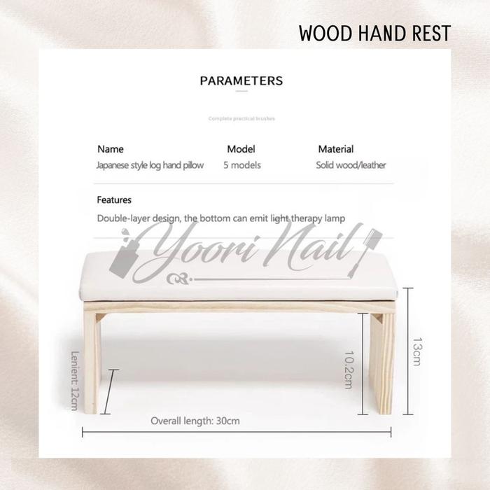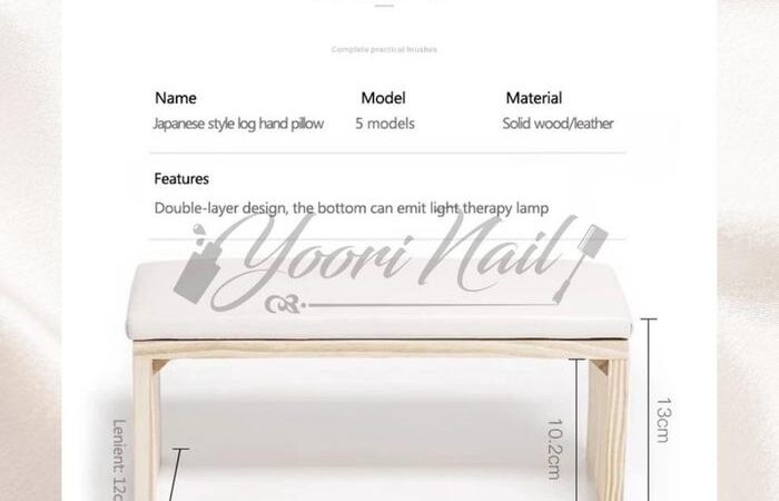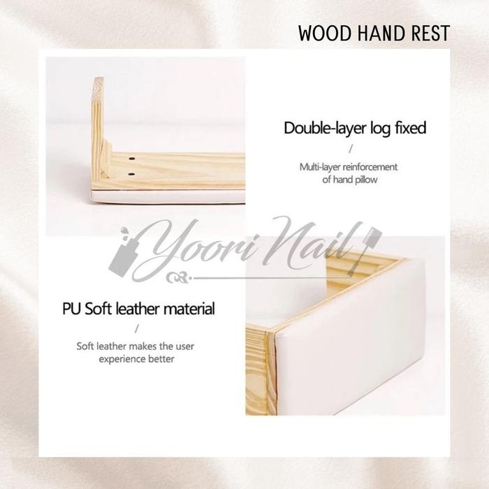 Dibuat dari material kayu kokoh dan dilapisi bantalan empuk berbalut kulit sintetis, alas tangan ini memberikan kenyamanan maksimal. Desainnya yang ringkas dan stabil seperti meja kecil tidak banyak memakan ruang di meja kerja Anda. Terdapat juga ruang khusus yang memudahkan penempatan UV LED lamp, membuat proses pengeringan cat kuku menjadi lebih efisien dan terintegrasi.