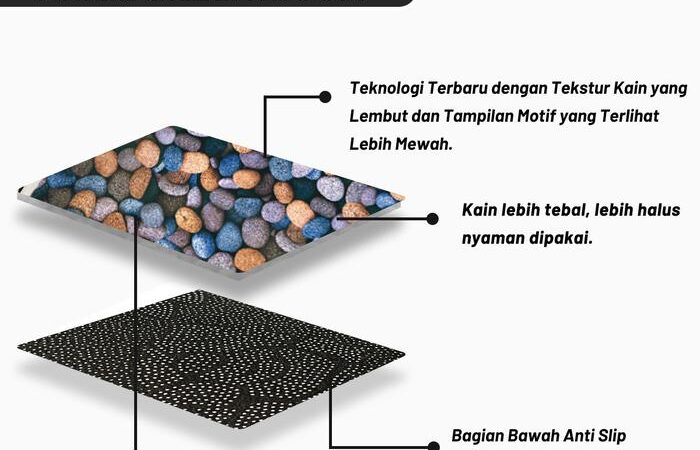 - Anti-Slip: Fitur pada bagian bawah keset yang dirancang untuk mencengkeram permukaan lantai, mencegah keset bergeser dan mengurangi risiko tergelincir.