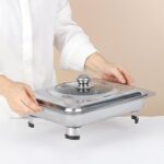 Dilengkapi dengan penutup transparan yang kedap, piring ini secara efektif melindungi makanan dari kontaminasi debu dan serangga, sekaligus menjaga kesegaran serta cita rasa hidangan lebih lama. Permukaannya yang halus memudahkan proses pencucian. Dengan ukuran 28 x 34 cm yang cukup luas, piring ini ideal untuk menata salad, buah-buahan, kue, camilan, atau hidangan utama dengan penyajian yang menarik.