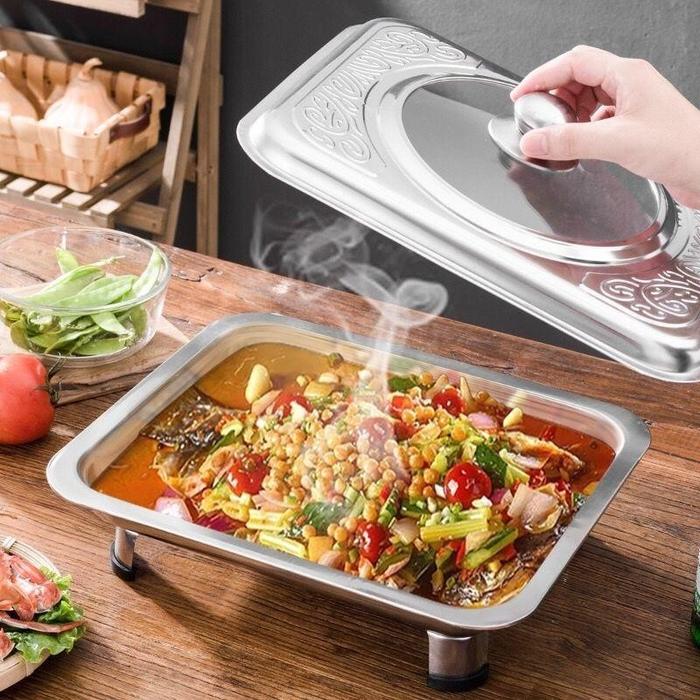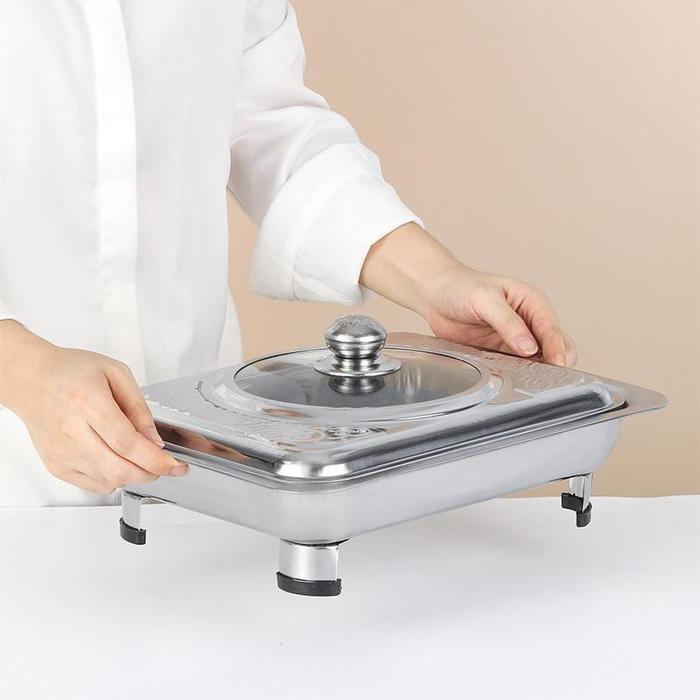 Dapatkan kemasan ekonomis berisi 4 piring prasmanan berkualitas tinggi untuk segala kebutuhan saji Anda. Terbuat dari material baja tahan karat (stainless steel) berkualitas, piring ini sangat kokoh, tahan lama, dan higienis. Desainnya yang minimalis dan elegan membuatnya cocok untuk berbagai suasana, mulai dari acara formal di restoran dan hotel hingga jamuan keluarga yang santai.