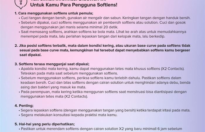 | Mengurangi mata kering | Pengguna lensa kontak harian | Teteskan 1-2 tetes pada mata tanpa melepas lensa kontak. |