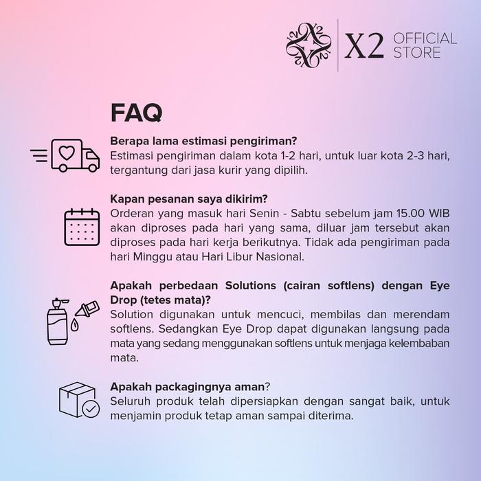 X2 Contacts Moisturizing & Comfort Drops didesain khusus untuk mengatasi mata kering dan iritasi akibat pemakaian softlens sepanjang hari. Dengan kandungan unggulan HA Hydroloc System, tetes mata ini memberikan pelumasan intensif yang melembapkan mata dan lensa kontak secara instan, sekaligus tahan lama.