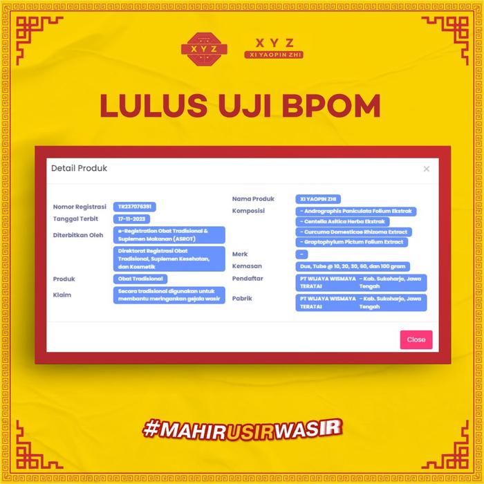 Xi Yaopin Zhi Cream adalah salep herbal berbasis pengobatan tradisional Tiongkok (TCM) yang diformulasikan untuk membantu meredakan gejala wasir dan ambeien secara efektif. Produk ini bekerja dengan mengurangi peradangan, nyeri, dan pembengkakan di area anus.