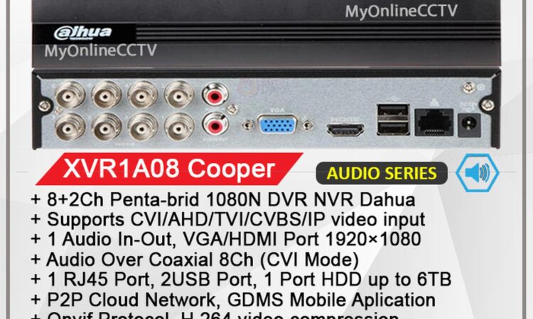 | Fitur Audio | Two-way Talk dan Audio over Coaxial pada semua saluran (jika menggunakan kamera CVI dengan built-in mic). |