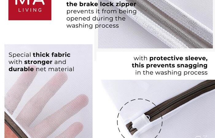 Dilengkapi protective sleeve yang memastikan resleting tidak merusak drum mesin cuci. Terbuat dari bahan Nylon dan Polyester yang kuat dan tahan lama, ringan, serta memungkinkan air dan deterjen bersirkulasi dengan sempurna.