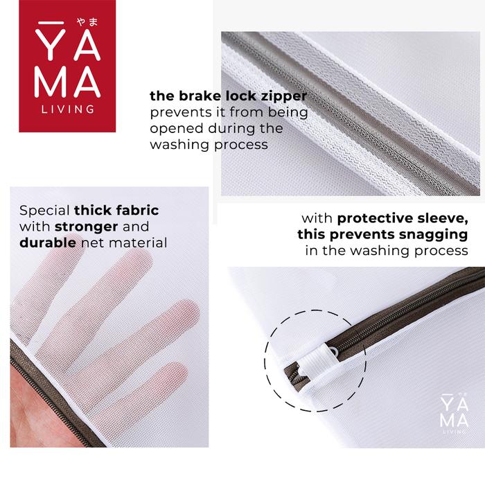 Lindungi pakaian favorit Anda dari kerusakan mesin cuci! YAMA RANDORI Laundry Bag adalah solusi cerdas untuk mencegah masalah seperti bahan berbulu, sobek, atau berubah bentuk. Desainnya yang inovatif khusus melindungi pakaian berbahan halus dan khusus selama proses pencucian.