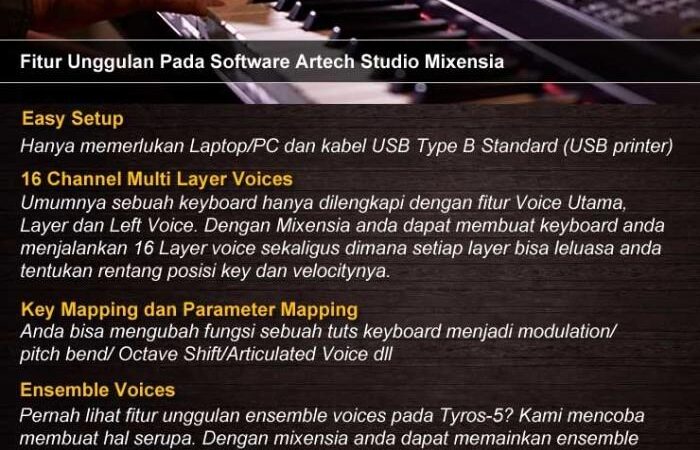 | Bonus Eksklusif Artech Music | Software Mixensia + Flashdisk 16GB berisi konten premium (detail di bawah) |