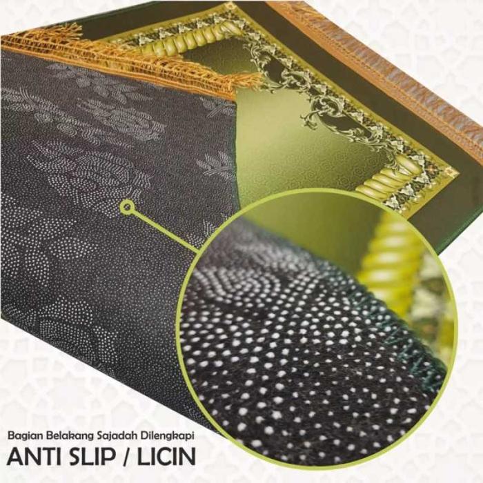 - Antislip: Material pada bagian bawah sajadah yang mencegah tergelincir saat digunakan.