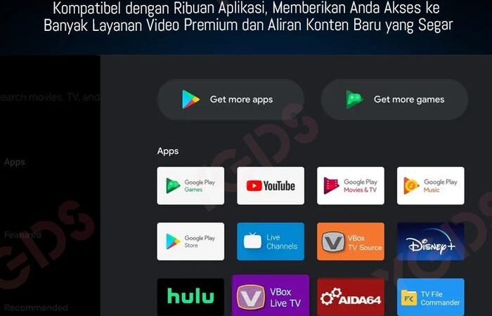 Produk ini telah terinstal aplikasi populer seperti YouTube, Netflix, dan Disney+. Anda juga dapat mengunduh aplikasi lain melalui AptoideTV. Dukungan proyeksi layar ponsel dan koneksi ke keyboard serta mouse membuatnya sangat serbaguna.