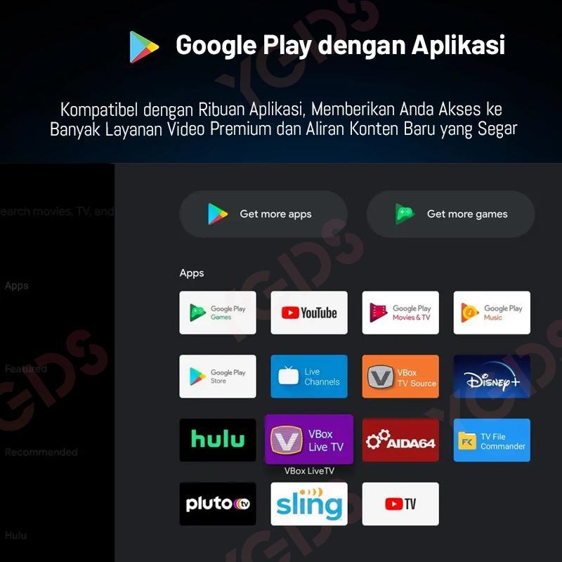 | Kemudahan | Plug & play – Sudah terinstal aplikasi (YouTube, Netflix, Disney+, dll). |