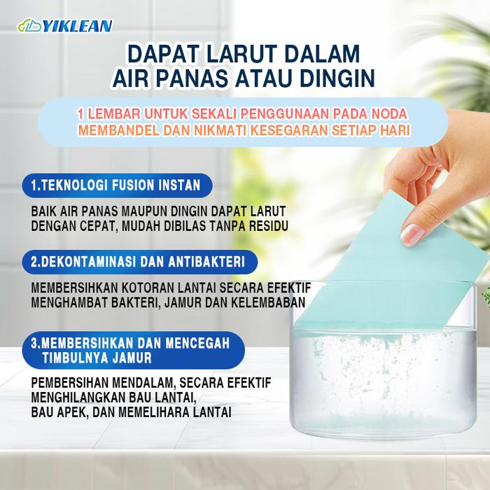 Transformasi kebersihan lantai Anda dimulai di sini. YIKLEAN Tablet Pembersih Lantai menghadirkan inovasi praktis untuk membersihkan seluruh area rumah tanpa repot. Formulanya yang kuat dirancang khusus untuk mengangkat noda membandel seperti minyak, kotoran hewan peliharaan, dan tumpahan makanan hanya dalam sekali usap. Cukup larutkan satu tablet dalam air, dan Anda siap untuk membersihkan.