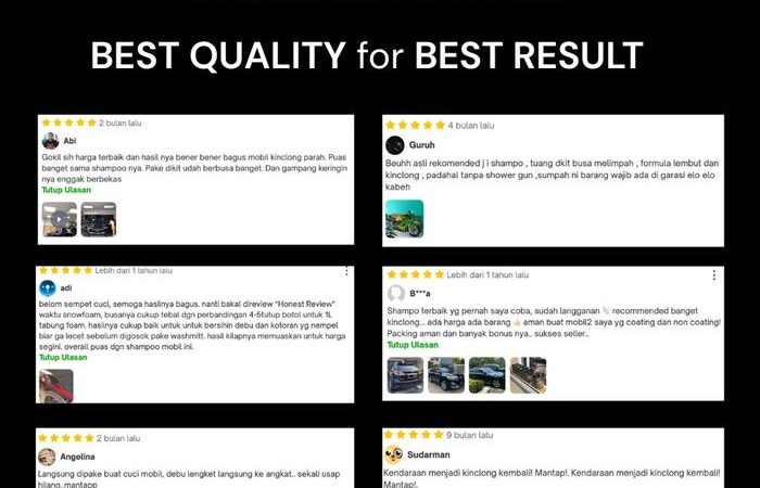 - Peringatan: Hindari shampo dengan pewangi kuat karena berisiko merusak permukaan kendaraan.