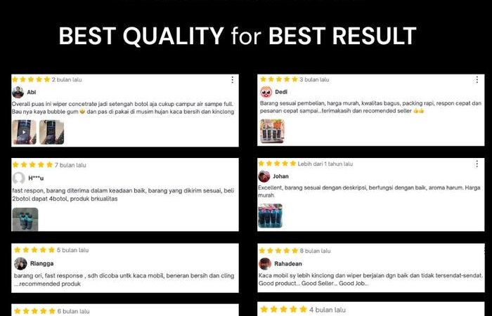 YOSHIKI Wiper Fluid adalah cairan pembersih kaca mobil berbasis teknologi Jepang terkini. Dirancang melalui riset mendalam dan uji laboratorium, produk ini memberikan performa premium dalam membersihkan, merawat, dan memaksimalkan visibilitas kendaraan. Formulasi khususnya juga aman untuk kaca berlapis coating, menjadikannya pilihan ideal bagi pengguna mobil modern.