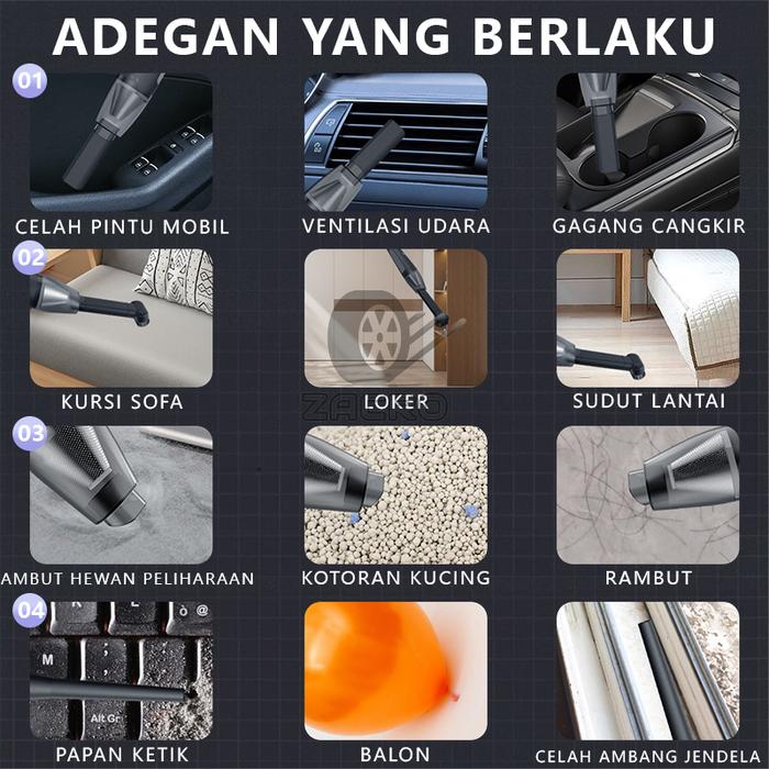 Ideal untuk: mobil, sofa, kasur, keyboard, celah sempit, mainan, dan area berbulu hewan.