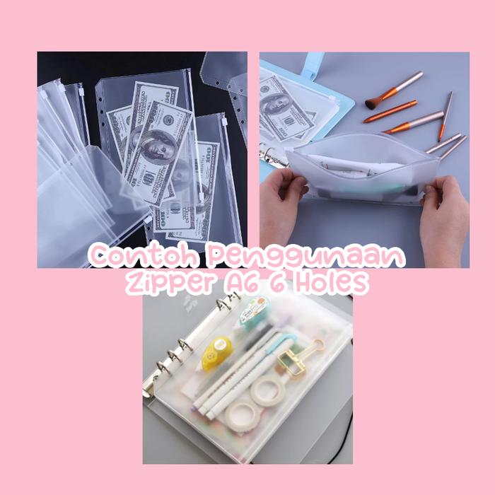 Zipper Bag Binder adalah solusi cerdas untuk menyimpan dokumen kecil, uang, atau alat tulis secara rapi dalam binder A5/A6. Dilengkapi kantong ziplock dan 6 ring, produk ini memudahkan Anda mengatur kebutuhan harian tanpa perlu membawa tempat pensil terpisah.