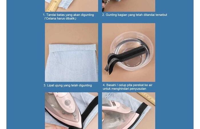 - Hemming Tape (Lem Jeans): Pita perekat khusus yang bereaksi terhadap panas setrika, digunakan untuk menyelesaikan tepian kain (seperti memendekkan celana) tanpa menggunakan jahitan.