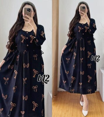 Dress Chibi Daster Lengan 3/4 Busui Kancing – Solusi Nyaman Ibu Modern