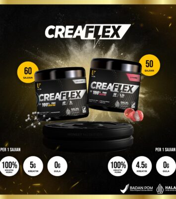 Tingkatkan kekuatan, daya tahan, dan massa otot tanpa lemak dengan Fitlife Creaflex, kreatin monohidrat murni...