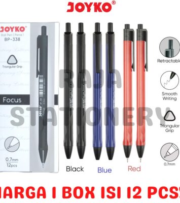 Joyko Ball Pen Clicker BP-338 – 12pcs/lusin – Hitam, Biru, Merah