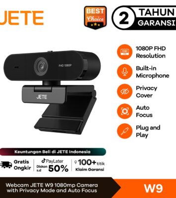 Jete Webcam 1080p Full HD W9 dengan Privaty Cover dan Rotasi 360°