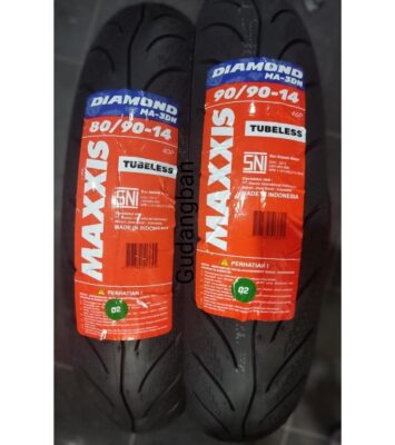 SpesifikasiDetailMerk & TipeMaxxis Diamond MA-3DNJenisBan TubelessUkuran yang Tersedia80/90-14 dan 90/90-14 (Paket...
