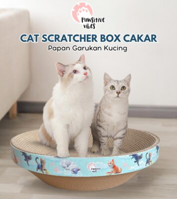 Pawsitive Vibes Papan Garukan Kucing Model Bulat 2 In 1: Tempat Istirahat & Tidur yang Nyaman