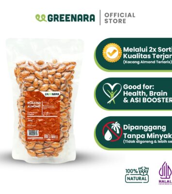Greenara Natural Roasted Almond 500gr / Kacang Almond Panggang