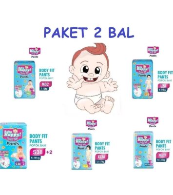 Dapatkan paket ekonomis berisi 2 bal (38 popok ukuran S + 2 bonus, 32 popok ukuran M, 28 popok ukuran L, atau 26 popok...