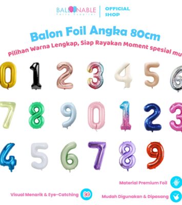 Hadirkan kemeriahan istimewa dengan Balon Foil Angka berukuran jumbo 80cm. Pilihan warna terkini tersedia lengkap untuk...