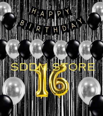 Paket Dekorasi Ulang Tahun Mewah: Tirai Hitam, Banner, dan Balon Angka Gold