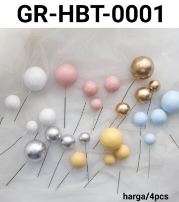Gr-hbt-0001 Cake Topper Hiasan Kue Bola Emas Perak Biru Pink Putih