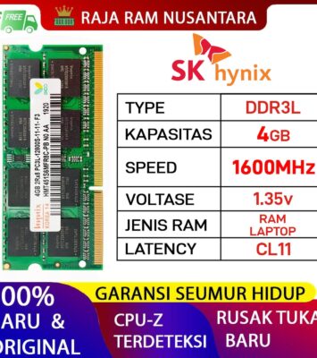 Spesifikasi ProdukKeteranganMerk & ChipHynix OriginalTipeDDR3L SODIMM (Untuk Laptop)Kapasitas4GB (1...