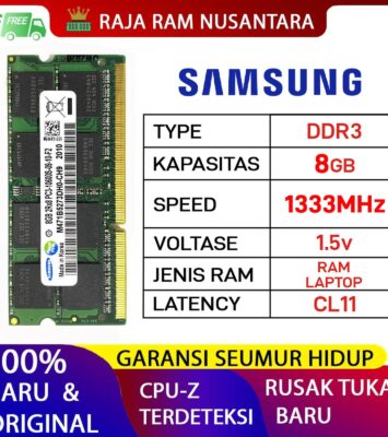 RAM Laptop Samsung DDR3 8GB PC3-10600 / 1333MHz | Ori | Lifetime Warranty