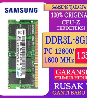 KategoriSpesifikasiMerk & TipeSamsung DDR3L SODIMMKapasitas8GBKecepatanPC3L-12800Voltage1.35V (Rendah...