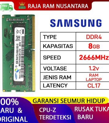 RAM Laptop Samsung DDR4 8GB 2400MHz PC4-19200 – 100% Original & Bergaransi Seumur Hidup