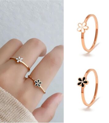 Cincin Barnett Titanium Daisy Kecil Tidak Pudar Benda Antik Bunga Hitam Putih