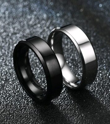 Cincin Titanium 316L Polos Hitam Silver Anti Karat dan Luntur