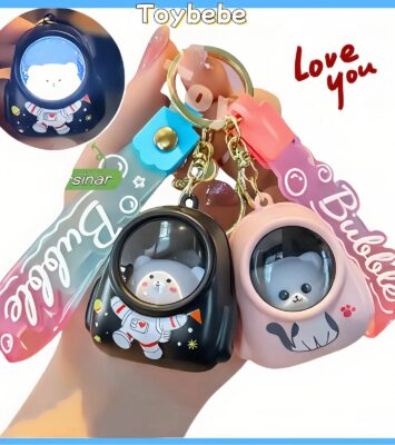 Gantungan Kunci Astronot Kucing LED – Pasangan Lucu dengan Lampu Malam