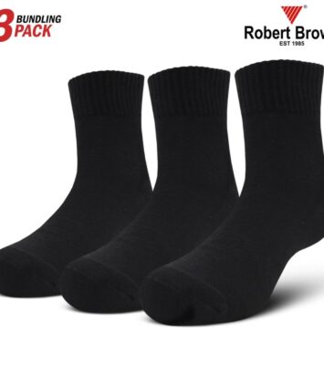 Kaos Kaki Sport Pria Robert Brown Katun Tebal 3 Pack 4237 Black
