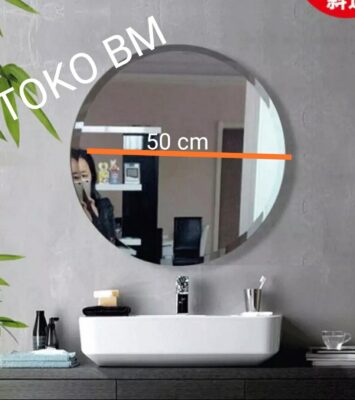 Cermin Bulat / Cermin Kamar Mandi / Cermin Rias Diameter 50 Cm | Plangset Lengkap