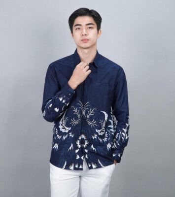 Swipe Up Kimeja Batik Pria Katun Slimfit Modern Lengan Panjang Motif Katsura Navy